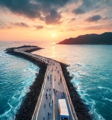 제부도는 하루 두 번 바닷길이 열리는 곳으로 유명합니다. 바닷물이 빠지면 드러나는 길을 따라 차량으로 섬에 진입하는 경험은 제부도만의 특별한 매력입니다. 물때 시간을 잘 맞추면 바다 위를 달리는 듯한 색다른 느낌을 받을 수 있습니다.
